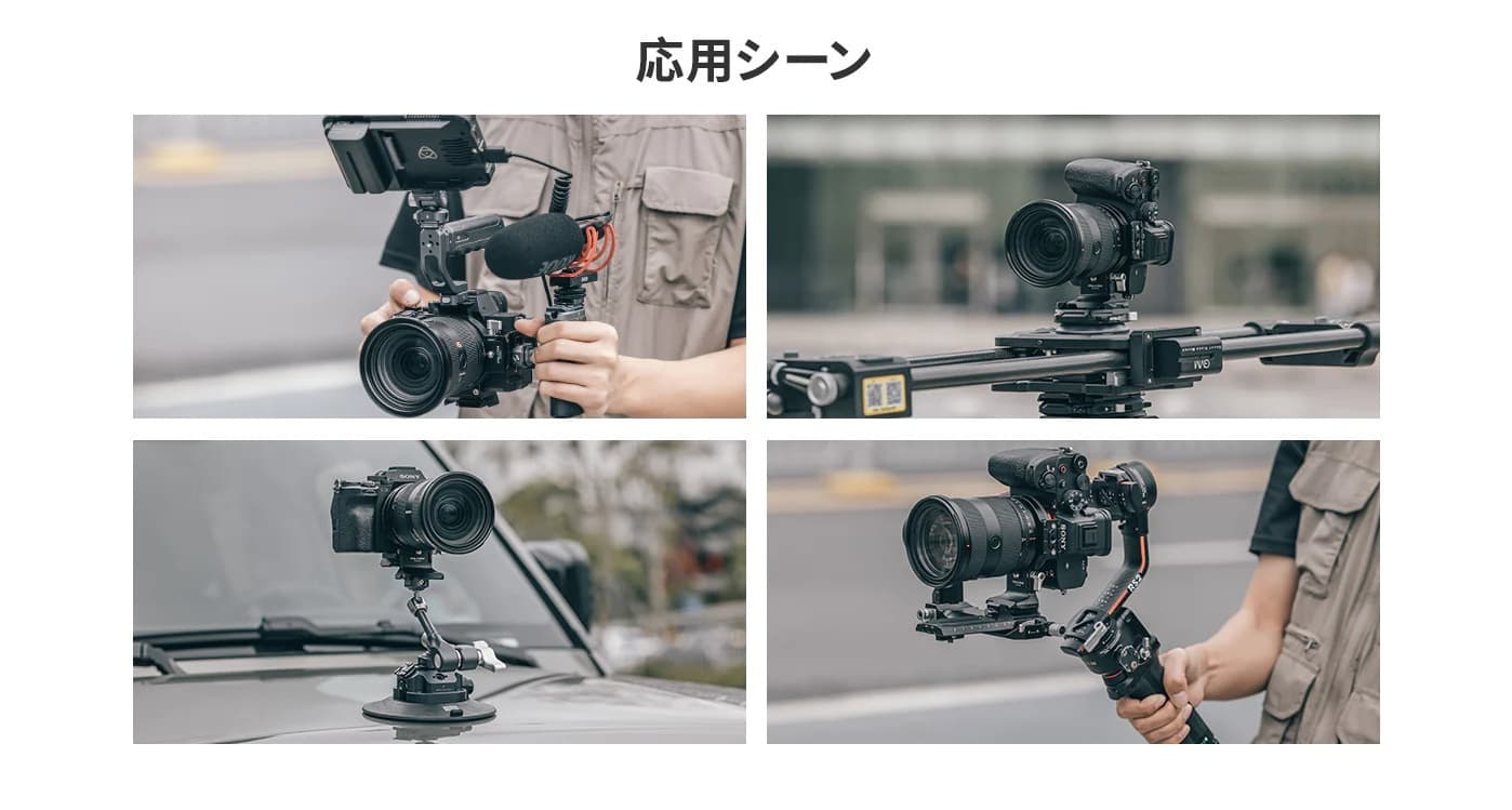 - DJIジンバルを使って ヒットさせる: カメラベースはDJlスタビライザークイックリリースインターフェースと互換性があり、DJI RS 3 / RS 2 / RSC 2に直接接続して使用することが可能です。