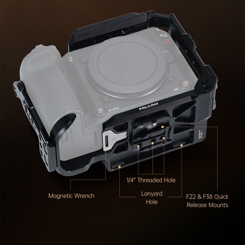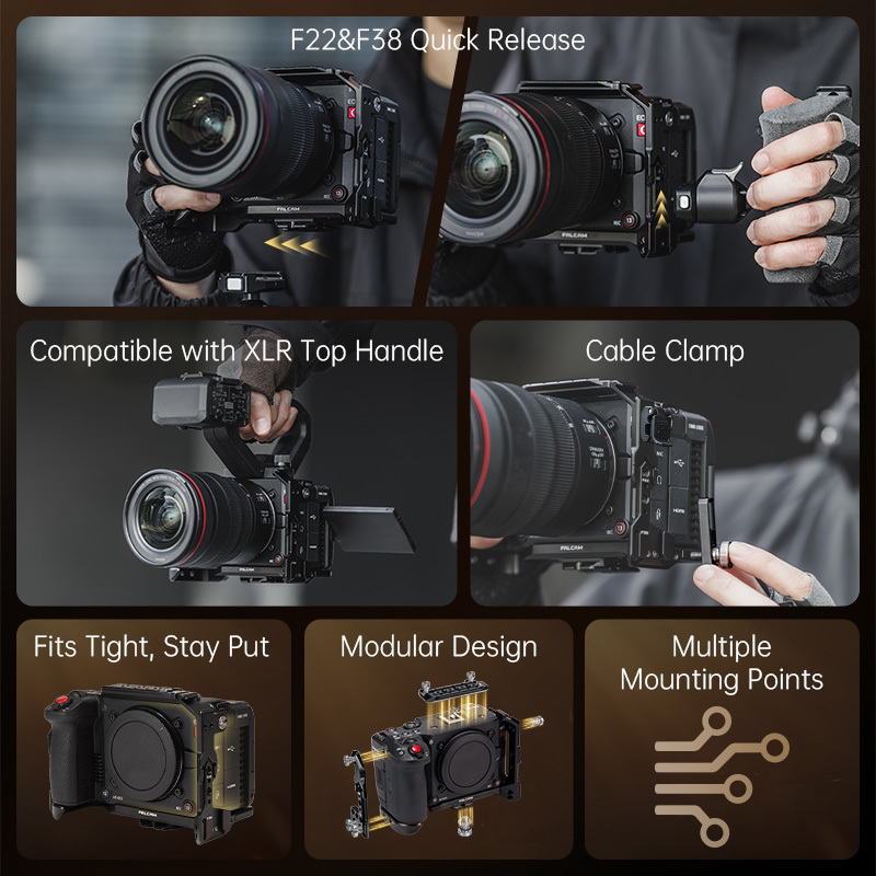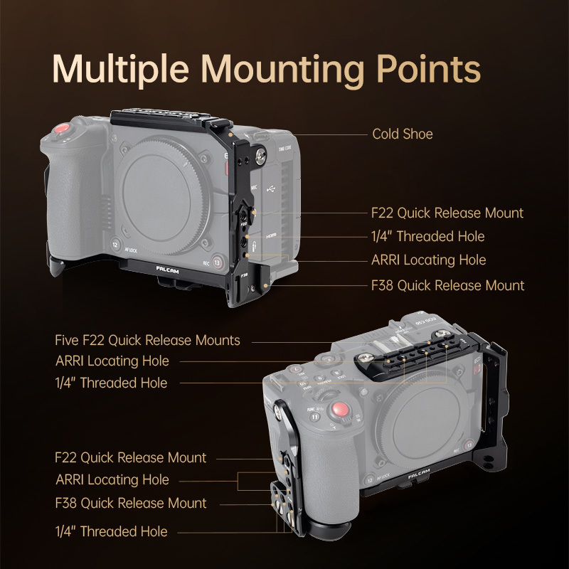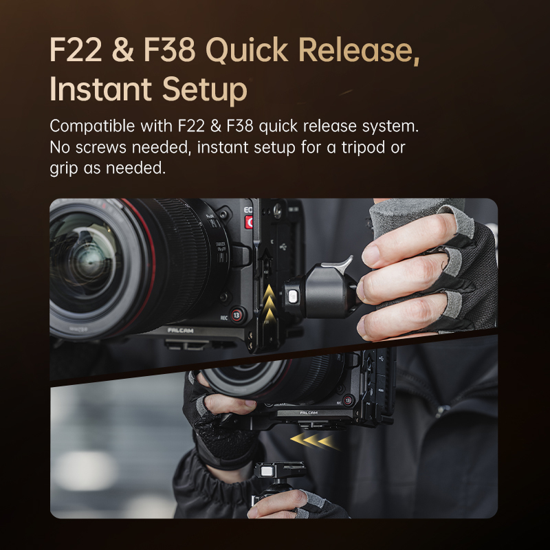 底面と側面にF22 / F38クイックリリースマウントを備え、三脚や各種リグへの着脱をスムーズに行えます。縦位置・横位置の撮影切り替えにも対応します。