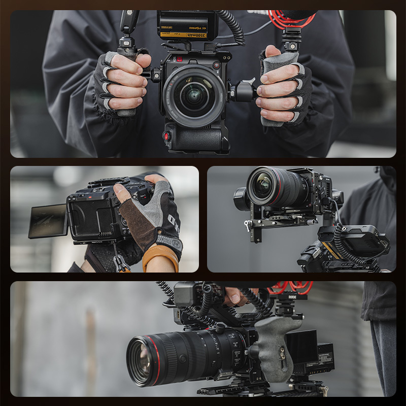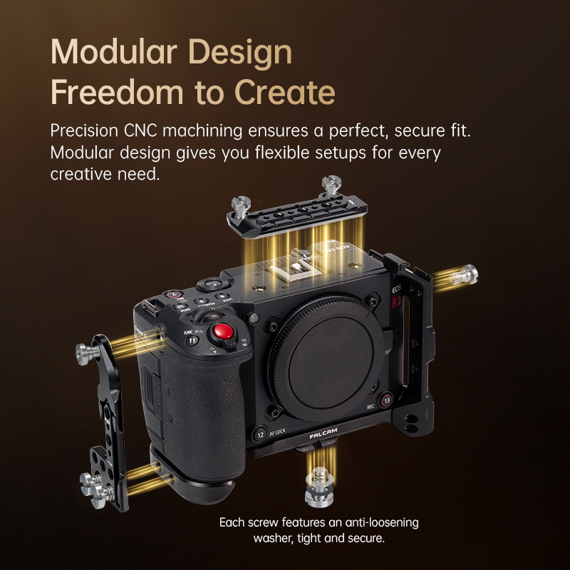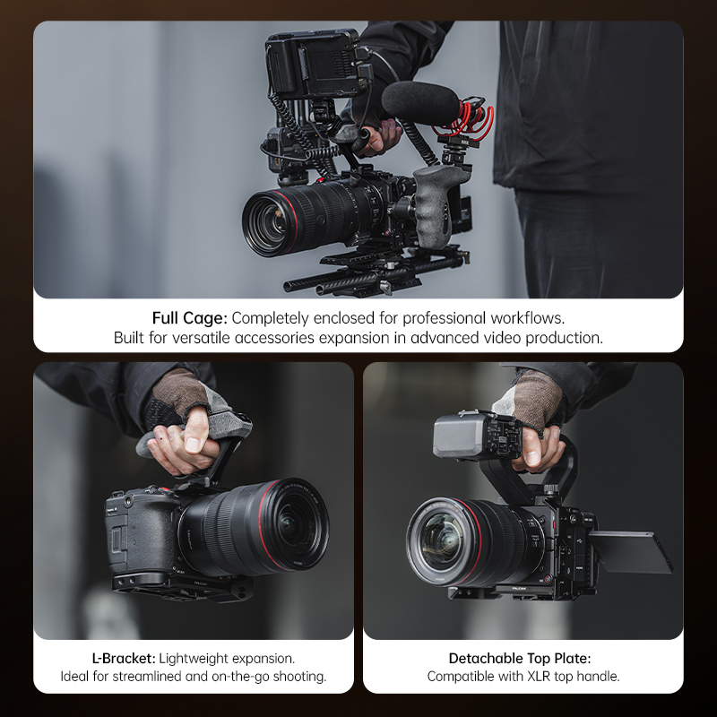トッププレートは着脱可能。フルケージ構成やLブラケット構成など、撮影スタイルに合わせた柔軟なセットアップが可能です。