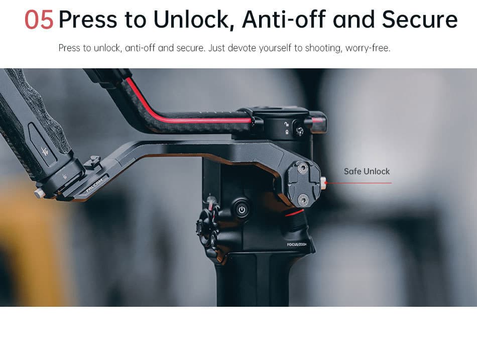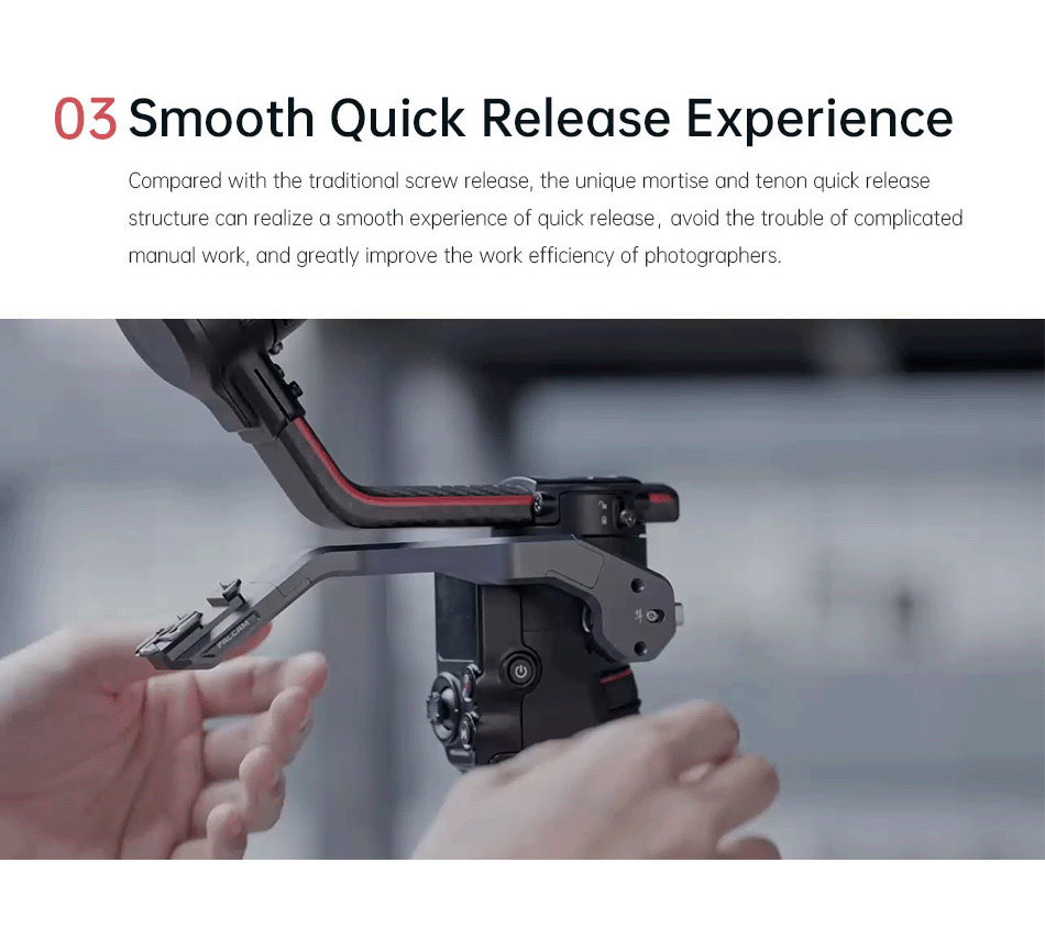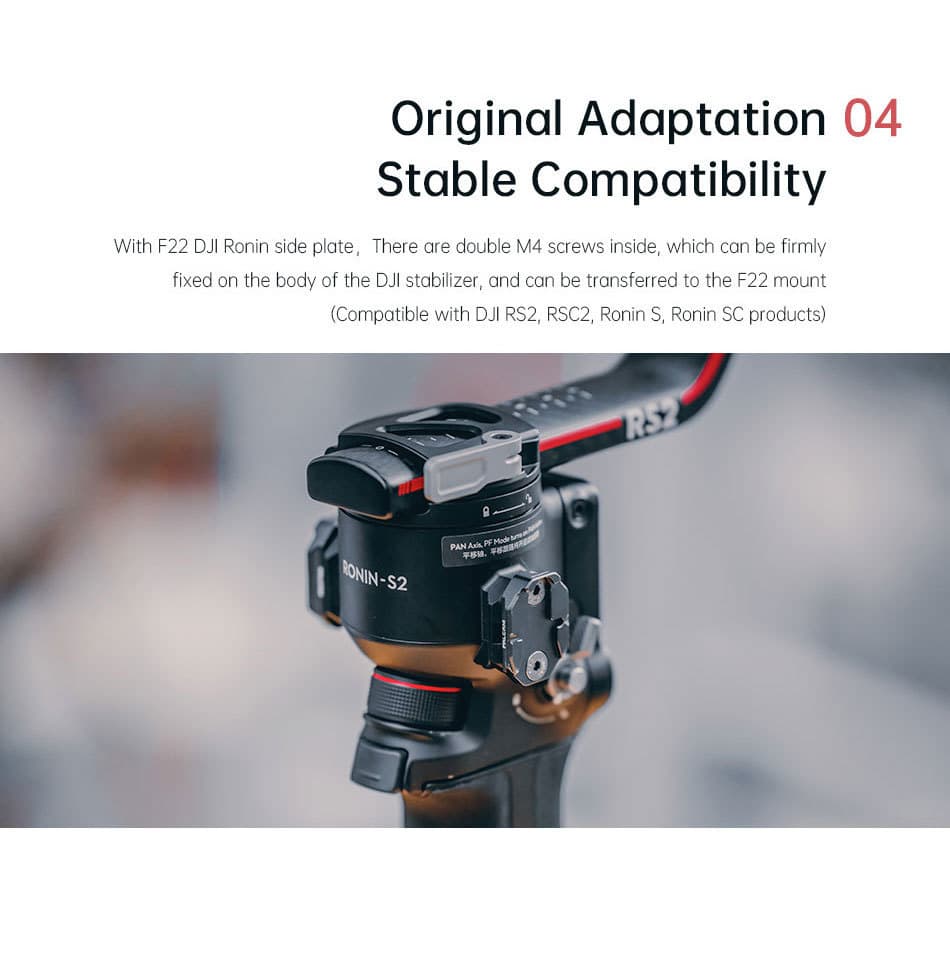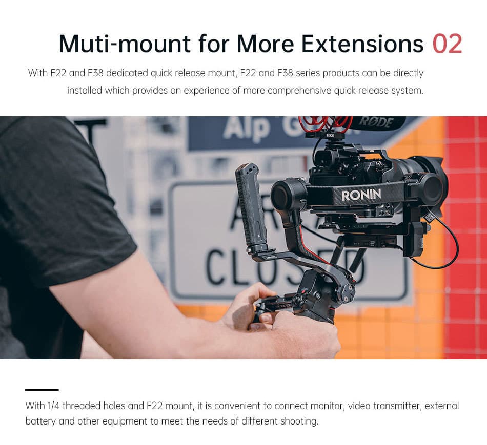 F22シリーズで初めて22mmのクイックリリースマウントを採用し、小型軽量化を実現。F22シリーズには、「押して取り付け、押して取り外し」につながるほぞ穴とほぞ構造の設計に従うだけでなく、一般的な機器アクセサリ用のクイックリリースシステムの完全なセットも含まれています。それをスピードアップする!スピード感あふれるクリエイティブな撮影をお楽しみください。