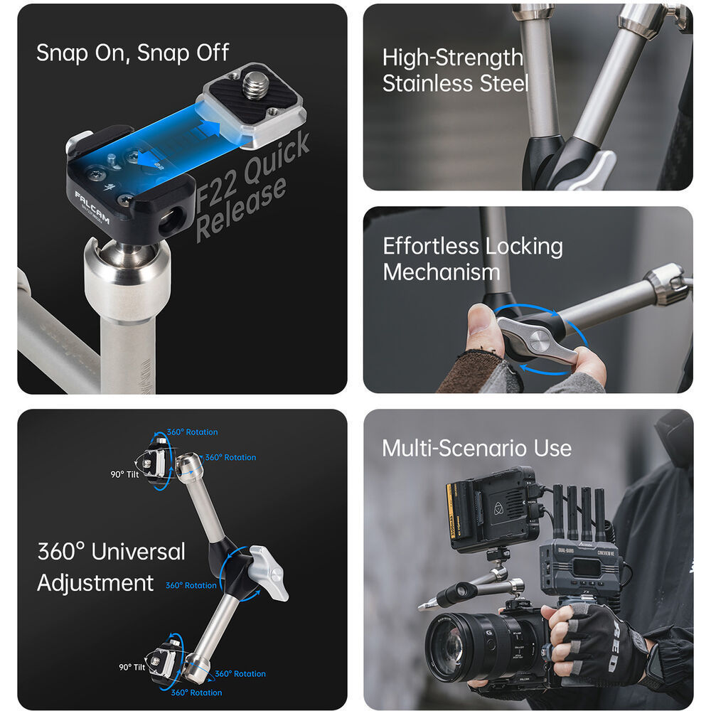 カメラケージ、三脚、スタビライザー、吸盤マウント、クランプなどと組み合わせ可能。モニター、スマートフォン、マイクなどの拡張用途にも適しています。