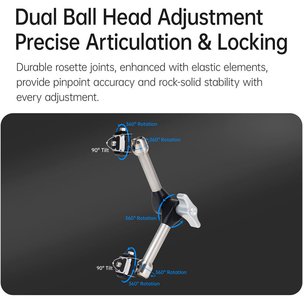ダブルボールヘッド構造により、幅広い角度調整に対応。正確な位置決めと安定性を確保します。