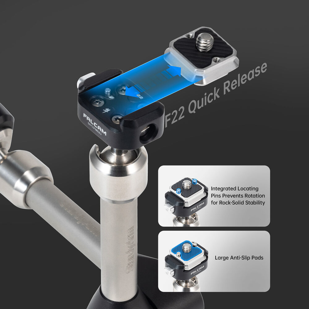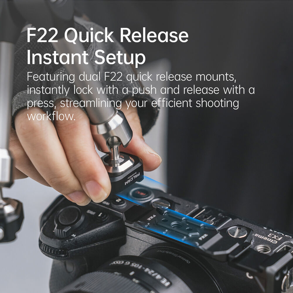 両端にF22クイックリリースプレートを搭載。ワンプッシュで装着・取り外しが可能です。