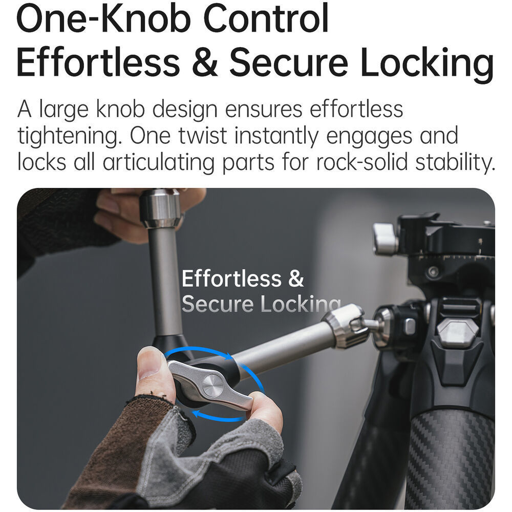 1つのノブで全可動部を同時に固定。回すだけで素早くロックでき、操作もシンプルです。