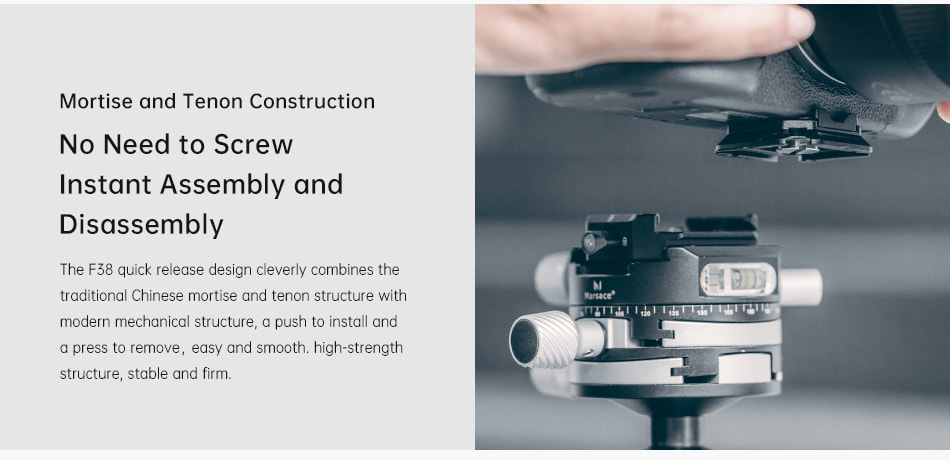 F38 クイックリリース トッププレートは、標準の 38mm アルカスイス規格と互換性があり、カメラをボトムプレートにマウントすると、F38 クイック リリース ボトムプレートを使用して異なるデバイス間をすばやく切り替えることができます。プッシュで組み立て、プレスで分解できるため、さまざまなデバイスをすばやく切り替えることができ、効率的でスムーズな体験をユーザーにもたらします。高精度のCNC加工、軽量で丈夫、触り心地が良く、技術感に溢れています。