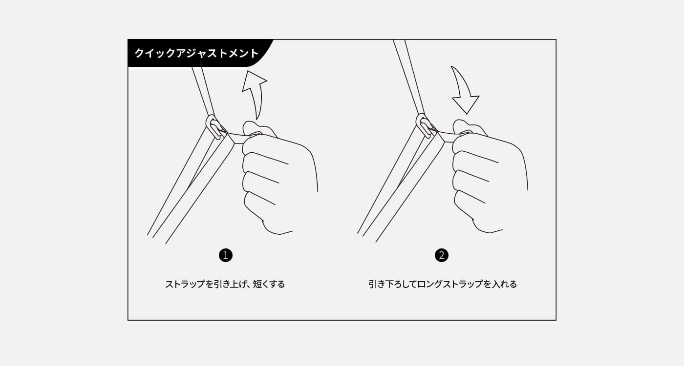 - 自由自在なクイックアジャストメント体験: 2つのクイックプルアジャスターによって可能になった、膨大な長さ調節の範囲